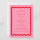 Fet retro vågig ram rosa & röd bröllops- inbjudningar