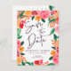 En djärv modern hösthösten chic bröllop spara datum med handskriven stil-typografi, med ljusröd färg, rosa, orange och grönt blommor och löv. Kontakta mig om du vill ändra skriptet.