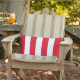 En fet lumbalpåse med livfulla röda och vita breda cabana-ränder. Det klassiska vertikala randmönstret ger en högenergisk, resortinspirerad stil till trädgårdsmöbler, poolplatssoffsetar eller veranda-dekor. En iögonfallande accent för utomhusutrymmen som älskar självsäkra, iögonfallande färger.