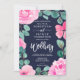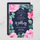 Fet rosa - blommigt, vattenfärgsfoto bröllop inbjudningar