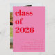 Fira student i stil med den här djärva och moderna "Klass of 2025"-studentfesten med gradens foto på baksidan. Den här designen har en slående röd text i en sjudande rosa och är perfekt för en roligt och ett minnesvärt firande. Denna inbjudan är ett enkelt anpassade med student namn, datum- och lokaliseringsdetaljer och anger tonen för ett spännande evenemang.