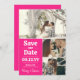 Fotokollage sparar datumet i en återtypografisk design och fet rosa accent färg. Spara datum-personligen med tre foton, bröllop-datumet med fet stil, vita siffror och namn i ett modernt skript.