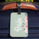 Modern brid-bagagemärke med ord-briden, perfekt för bruden på honeymånen, bachelorette eller bröllop. Klicka på Anpassa om du vill anpassa text och/eller ändra bakgrund färg. Gör en underbar helgdag eller en Coola med fyllnadsfyllning, födelsedagspresent eller helgdag.