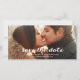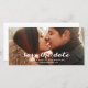 Spara vårt datum | Modern skript sparar datumfotokortet. Design av Elke Clarke© Bold, enkel, modern text för vitt skript övertäckning. Fullständigt anpassade om du väljer "anpassa den". Byt ut det exempelfoto som visas mot ett eget förlovning-foto. Annan tillgänglig färg.