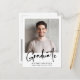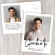 Modern vykort för studenten-meddelande med ditt foto och "Student" i ett snyggt med fet stil. Lägg till namn, skola och klassår i enkel typografi. Lägg till ytterligare ett foto- och personlig-meddelande i motsatt riktning eller lämna tomt.