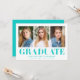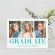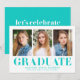 Inbjudan gäster till party med vår snyggt... Fet korall studentfest inbjudningskort! Den moderna studentfestens inbjudningskort visningar tre av dina favoritfoton med "Student" nedan i ett turkostigt modernt typsnitt stil och student namn, skolåret namn & studenten. Baksidan visningar studentfestens detaljer under frasen "låt oss fira" med en solid turkospaket.