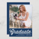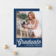 Meddela din studenten till familj och vänner med anpassadets fotomeddelande om studenten. Den har ett fet återtro-skript och klassisk typografi. Anpassa genom att lägga till information. Detta meddelande om marinblått studenten finns tillgängligt i andra karddjur och färg.