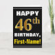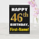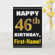 Fet, svart, Faux Guld 46:e födelsedagen med Namn-k Kort