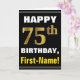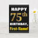 Fet, svart, faux Guld 75:e födelsedag med Namn-kor Kort
