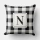 En fet svart och vit gingham-rutig kastkudde med en anpassningsbar monogram-initial i en svart fyrkantig ram. Den slående buffelrutan i kombination med den klassiska efternamnsinitialen skapar en grafisk, högkontrastaccent för vardagsrum, sovrum eller moderna utrymmen. Initialen är helt redigerbar för att anpassa med din familjs efternamnsbokstav.