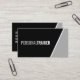 Affärskortet Fet Black and White Personal Trainer (Fet Black and White Personal Trainer) med information i fet stil stil på svart bakgrund med vit och grått diagonal sida gräns. Perfekt för personlig tränare, tränare och tränare och många andra yrken.