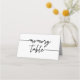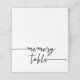 Minnet med bord-grafikkort för en begravnings- eller minnesstund i en svart och vit design med ett fet skript. Vitt minneskort bord med svart skript.