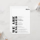 Fetstilt svart vit bröllop-förlovningsfest med "vi är engagerade" skriven med ett fet stil i svart och vitt