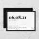 Fet typografi svart vit minimalistisk enkel Spara datumet. Enkelt men lyxfritt vykort och elegant svart och vitt spara datum meddelande-vykort. Designad med stark och djärv typografi. Hela sviten är tillgänglig, checka ut samlingen.