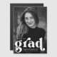 Snyggt studenten-annonsmagneter med lodrät student med "grad" i fet vit stil. Anpassa annonsmagneten för fotot studenten genom att lägga till student namn, studenten och skolan.