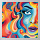 Våldsamma virvelströmmar av blått, orange och gult skapar abstrakten från en kvinnas ansikte i ett modernt och vismiskt stil. Det djärva linjer och ljusa färger ge får intrycket av rörelse och fluiditet, samtidigt som de väcker en känsla av konst och känslor.