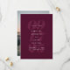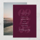 Medan den ena sidan visar alla dina bröllopsdetaljer i elegant typografi mot en vin - Merlot - vinröd bakgrund, visar den andra sidan ett enda vertikalt foto. Detta spara-datum-kort är den perfekta presenten att dela dina förlovningsfoton samtidigt som ni tillkännager er stora dag.