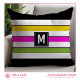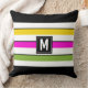 Frischa upp dina inomhus- eller utomhusutrymmen med denna moderna kudde som har modern färgblockering, feta ränder och en anpassningsbar initial. Klara färger i soliga nyanser av rosa, gul och grön kommer att tillföra en stänk av kul till ditt vardagsrum, veranda eller uteplats. Ändra initialen för att skapa ett unikt hemtillbehör eller husvärmegåva till nya husägare.