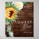 Den här djärva landsolsolen | trägästboksskylten är perfekt för din enkla klassiska boho-sommar-utomhus bröllop på lantgård. Designen har en bukett av vintage akvarell guldfärgade och rustika orangea solrosor, elegant modern salvia grön eukalyptusgrönska och en vit elfenbensros. Designen är idealisk för ett avslappnat minimalistiskt höstbröllop utomhus. Vänligen kontakta oss om du har några frågor om produktens design; skål!