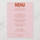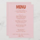 En färglös funky, modern, smart bröllop-middagsmeny. Med chic-malldesign för bho vintage bubble rosa bakgrund och fet typography-meny i rust ... Perfekt och matchning med hela sviten.