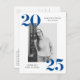 Inbjudan gäster som firar ledigheten med vårt moderna vykort för studentfest 2025 i fetstil. Snyggtens studentfest vykort visning studenten fotot ramade in vitt med 2025 i fet blå text överst till lämnat och höger i grund. Anpassa studentfesten inbjudan genom att lägga till student namn & Skola namn. vykortet återgår till visning av returadress- och studentfest-information.