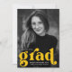 Inbjudningar till fet studentfest med student-fotot med "grad" i fet gult. Anpassa inbjudningskorten för studentfest av foton genom att lägga till student namn, studenten och skola. Inbjudningskorten för studentfest av gult går tillbaka till visning av dina party-uppgifter.