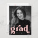 Bold studentfest-vykort med student-lodräts foto med "grad" i fet rosa. Anpassa inbjudningskorten för studentfest av foton genom att lägga till student namn, studenten och skola. Studentfesten för vykort inbjudan återgår till visning av din returadress och information om party.