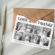 Fetstipografi Tack åtta fotosamlingskort med texten "Kärlek och tack". Baksidan innehåller ett annat foto av de nya lywederna på svart.