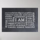 Jag är skriven i mitten, omgiven av ord och kvaliteter när det gäller vågrät och lodrät. Lätt att läsa modern teckenstil, som visas i vitt till att likna vitt krita med en faux svartbords stil-bakgrund. Framgång, fred, förtroende, kärlek, hälsa, tacksamhet och styrka, bland annat bra. Läs varje ord högt på morgonen och starta din dag från känslan av styrka och fullt av bra vibes. Jag är tacksam! Jag är överflödig!