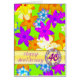 Ett bröllop-årskort till ge till ett par. Fungor i ljusa färger "toppkonst". Ett vibrerande kort som säger "LYCKLIG!" De flerfärgade blommorna tumlas över gröntens bakgrund. Kortet lämnas tomt till användan som ett anteckningskort eller för ditt eget meddelande Se hela intervallkorten i min butik. All upphovsrätt till teckningar från Norma Cornes.