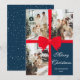 Det här marinblåa julkortet blandar modern stil med festlig charm. Den pulserande röda bågen ger helgdag och dina familjefotor tar mittsteget. Ett chic sätt att säga "God jul" och få minnen att lyda.