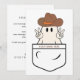 Skicka lite spöklik kul med vårt västliga Halloween-kort med ficktema, "Boo Cowboy Fun"! Med en lekfull design med en cowboy-spöke som tittar ut från en ficka är detta kort perfekt för att lägga till en touch av västlig charm till dina Halloween-hälsningar. Det är idealiskt för vänner, familj eller festinbjudningar och är ett unikt sätt att fira säsongen.