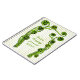 Spiral bound notebook journal with fiddlehead ferns illustration on the front. Light vertical lines are in the background with bright green curls of the fiddlehead along the edges. Customize green text in the center. The Fiddlehead fern is a popular Spring delicacy in certain areas. Use the book as a foraging notebook, specialty cookbook, or personal diary.