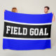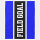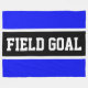 This sporty design features athletic FIELD GOAL text inside black, white, and bright royal blue stripes. The text can be personalized.