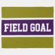 This sporty design features athletic FIELD GOAL text inside deep purple, white, and golden olive stripes. The text can be personalized.
