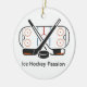 elebrate your love for the game with this sleek and modern Ice Hockey Passion ornament. Featuring a clean, minimalist illustration of an ice hockey rink, a puck, and classic crossed sticks, this design captures the essence of the sport in a contemporary style.