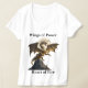 En hård gyllene drake som regnar upp med fullt måne i bakgrunden. En slogan "Vingar av makt, brinnande hjärta" omger bild. En underbar t-shirt för en man eller kvinna som har fantasi. Innehåller generativ innehåll.