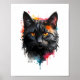 Den här slående svarta katten porträtt glänser med orange ögon och levande vattenfärgen stänk. Den kraftfulla designen blandar realism och abstrakt konst, skapar den som ett fängslande centrum för kattentusiaster och djärvt modernt insida.