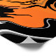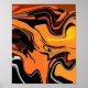 This design features a bold abstract pattern with flowing swirls in shades of orange, black, and yellow. The fiery color palette and dynamic shapes evoke a sense of warmth and energy, resembling flames or molten lava. Perfect for statement pieces on apparel, accessories, or modern art decor.