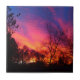 Fiery Sunset genom Träd Kakelplatta