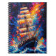 Fiery Sunset Tall Ship Abstract Painting Nautical Anteckningsbok