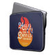 Laptop sleeve med ett citat från William Shakespeare's The Tempest "helvetet är tomt, och djävulen är här" mot en orange eld mot blå bakgrund. *Observera att Zazzle Watermark som visas i zoomförhandsvisningen INTE visas på den färdiga tryckta produkten. © Bookish and Wonderful