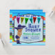 Fiesta-babyduschinbjudan med söt pojke med mörk blått sombrero-utrustning på en festlig multipla färg-serbapbakgrund. Dessa beundransvärda babyduschinbjudningar från pojke i Mexiko anpassas enkelt till ditt evenemang genom att du bara lägger till dina uppgifter.