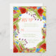 Mexikanska fiesta bröllop OSA-svarskort med traditionell färg blommigt-bakgrund. De här färgstarka och festliga svarskorten för fiesta-bröllopet OSA är enkelt att anpassa för evenemanget genom att helt enkelt lägga till dina uppgifter i teckensnittet stil och färg, formuleringen och layouten efter eget val. Du kan också ändra bakgrunden till färg.