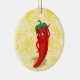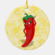 En röd och het peppar seriefigur. Originaldesign med guldbroderi (gult tryck) mönster i bakgrunden. Anpassad keramisk prydnad. Dekorationsidé för alla fester du kan tänka dig! Gåva idé för kryddälskare.