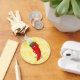 En röd och het peppar-figur i tecknad stil. Originaldesign med gul (guldbtryck) spetsmönster i bakgrunden.
