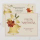 Invitación elegante para fiesta de Navidad. Imagen bonita de una campana dorada con decoración delicada de flores y un suave borde rojo. El reverso de esta invitación con estilo tiene 2 bonitos adornos navideños decorados con flores. Todo el texto, la fuente y el color de la fuente son totalmente personalizables para cumplir con tus requisitos. Si deseas ayuda o productos a juego, por favor contáctame a través de mi tienda y estaré muy feliz de ayudarte.