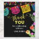 En färgglad Fiesta tack-vin etikettlabel med ett mexikanskt banner tema och blomster kaktus design. Denna festvinsetikett kan anpassas med din information.
