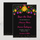 Det är dags att tillkännage din stora dag! Detta Fiesta Spara datum-kort är ett färgglatt och roligt sätt att låta människor veta att de ska markera sina kalendrar. Med vackra ljusa och färgglada blommor och guldgnistrar sticker det verkligen ut. Se koordinerande artiklar i vår butik, Enchanted Finch.