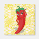 En röd och hett peppar tecknade figurer. Ursprunglig utformning med guld (gult print) snöre mönster i bakgrunden. Anpassningsbar magneter. Dekoridé för alla fester som ni kan föreställa er! Tanken på kryddig mat älskare.